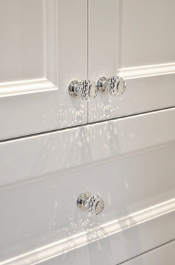 Dette stilige hjemmet har funksjonsrike løsninger fra kjøkken til barnerom. Kjøkkenet er utstyrt med romslige arbeidsflater, store skuffer og knotter i børstet stål, mens kjøkkenøya har benkeplate i mattslipt granitt og nedfelte kontakter med telefonlading. Spisestuen har en veggseksjon i sortmalt eik med vitrineskap og kjøpmannsskuffer. Soverommet inkluderer en dobbeltseng med nattbord og egen garderobe tilpasset skråtak, og barnerommet har en innebygget seng og nattbord i klassisk hvit og dusty lilla. En skrivepult med skuffer og benkeskap gir ekstra oppbevaring.